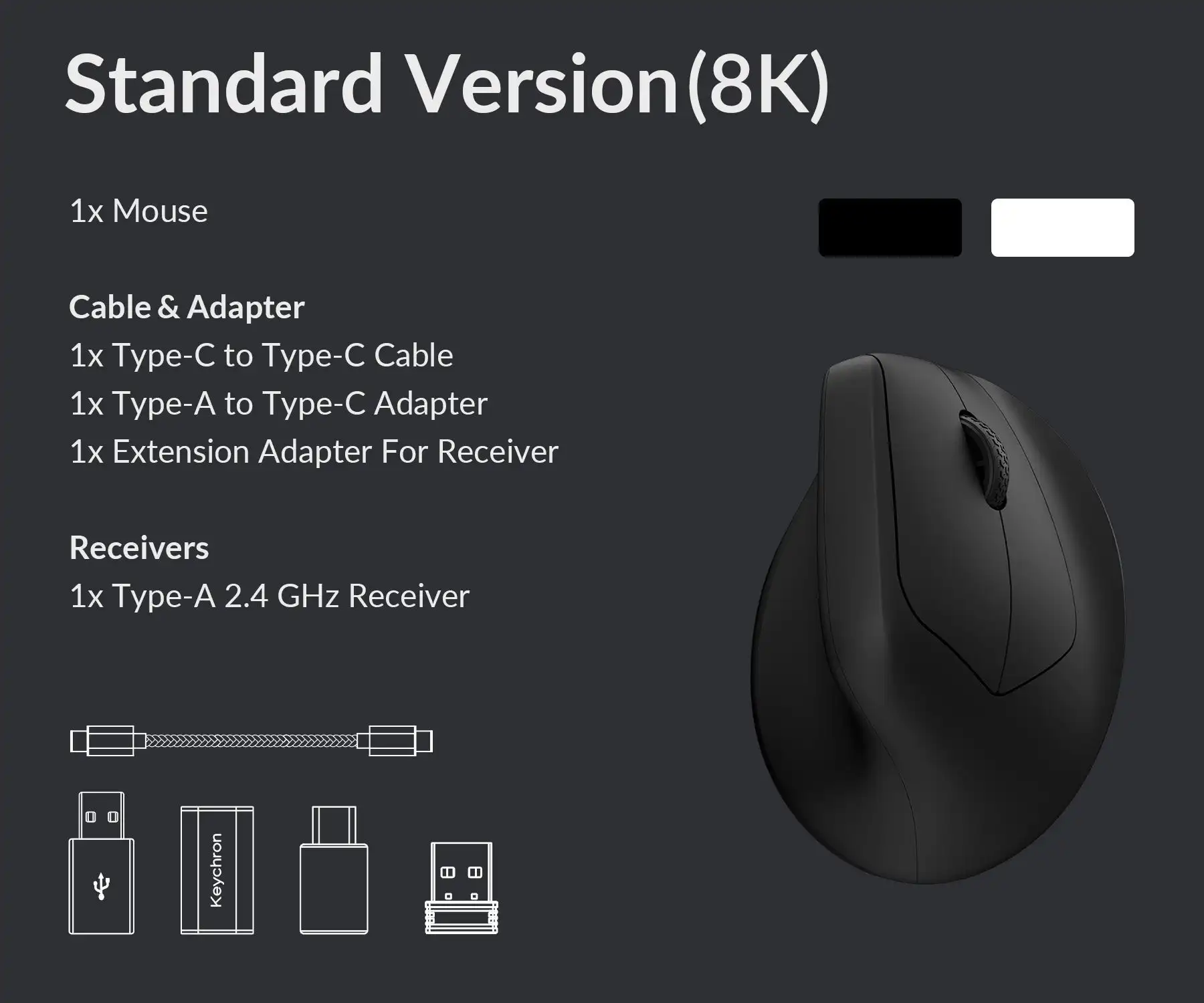 Keychron M5 packs all the best features in its super ergonomic vertical design. It supports both 2.4 GHz wireless and Bluetooth connection, ideal for any scenario, whether at work, gaming, or on the go, and offers ultimate performance to maximize productivity!