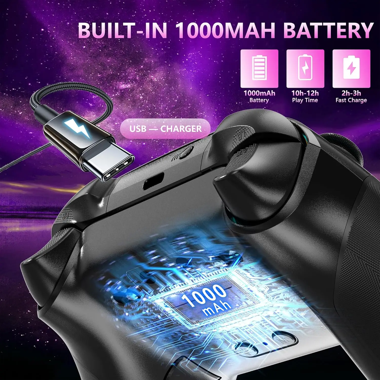 (Built-in 800mAh Lithium Battery&2.4GHz Wireless Adapter) - Built-in 800 mAh lithium battery, supporting Type-c port charging, it only needs 2-3 hours of charging and can be used for 10-14 hours.