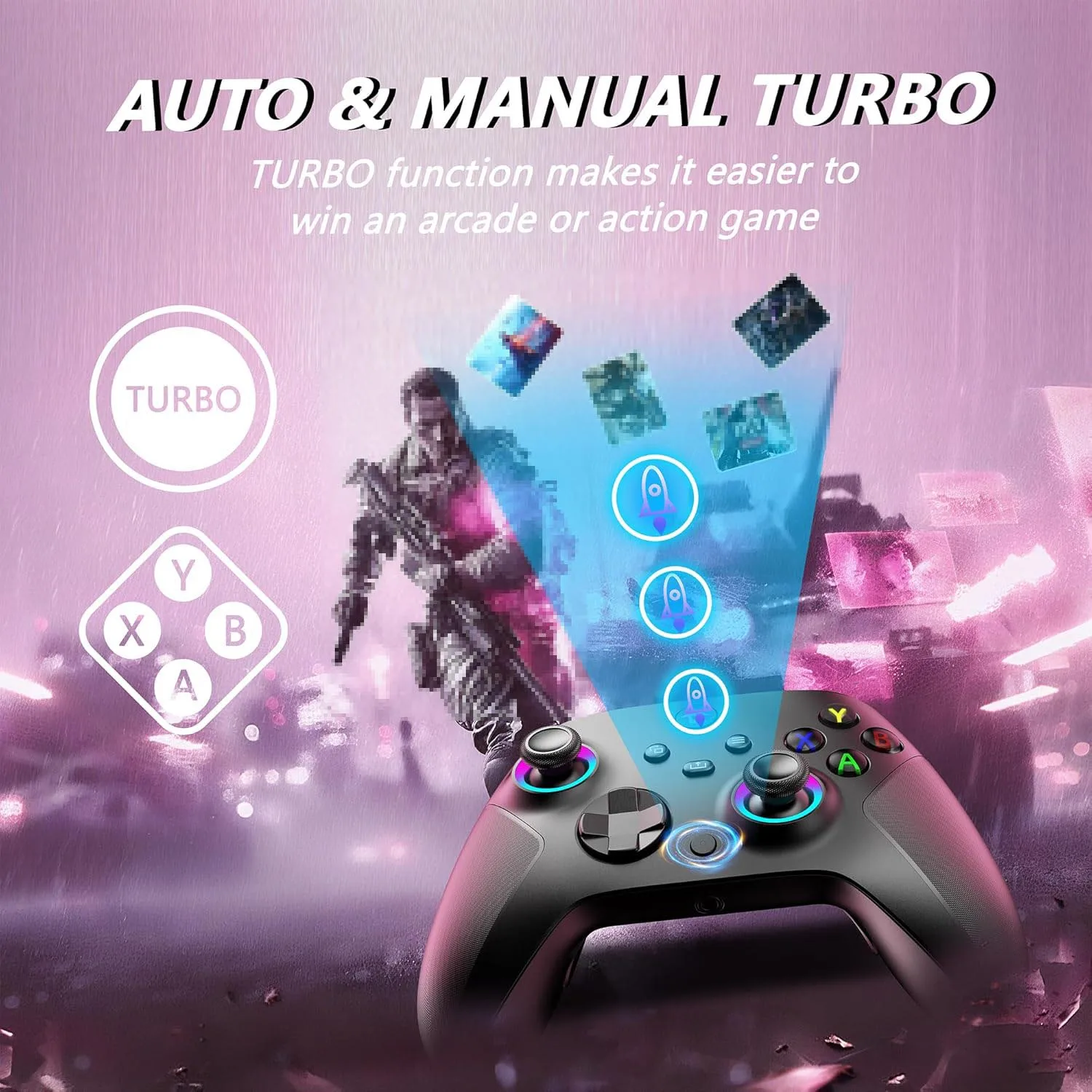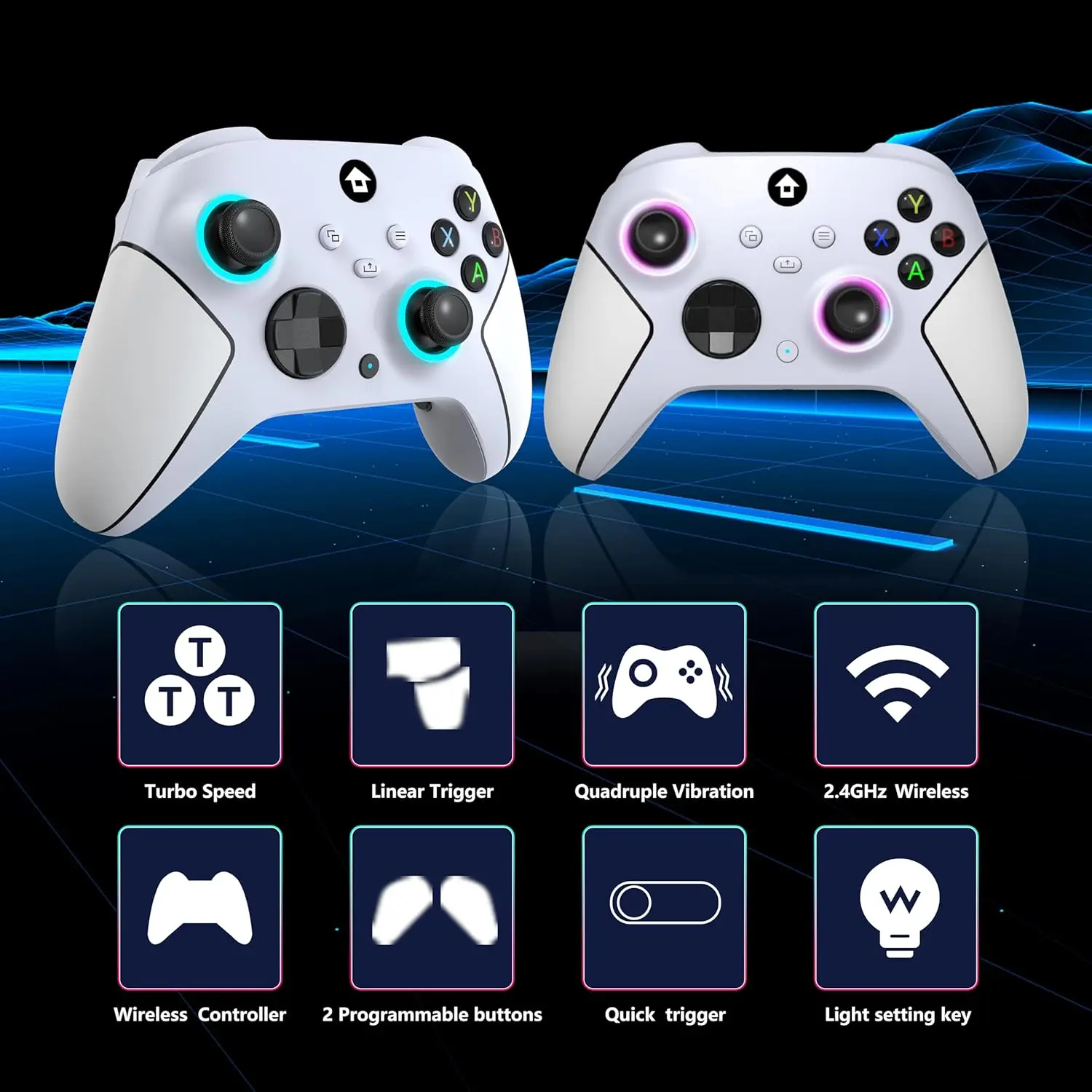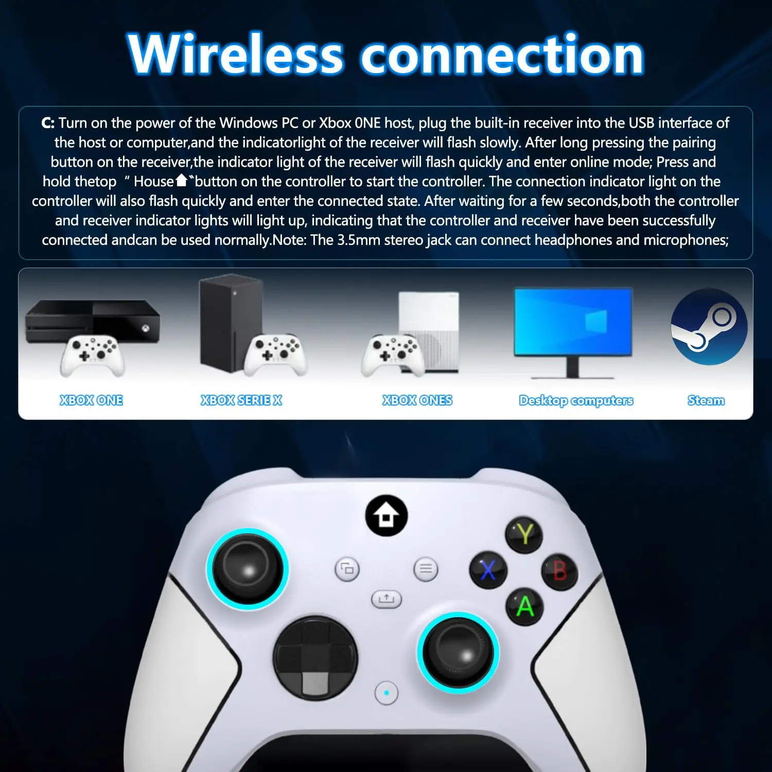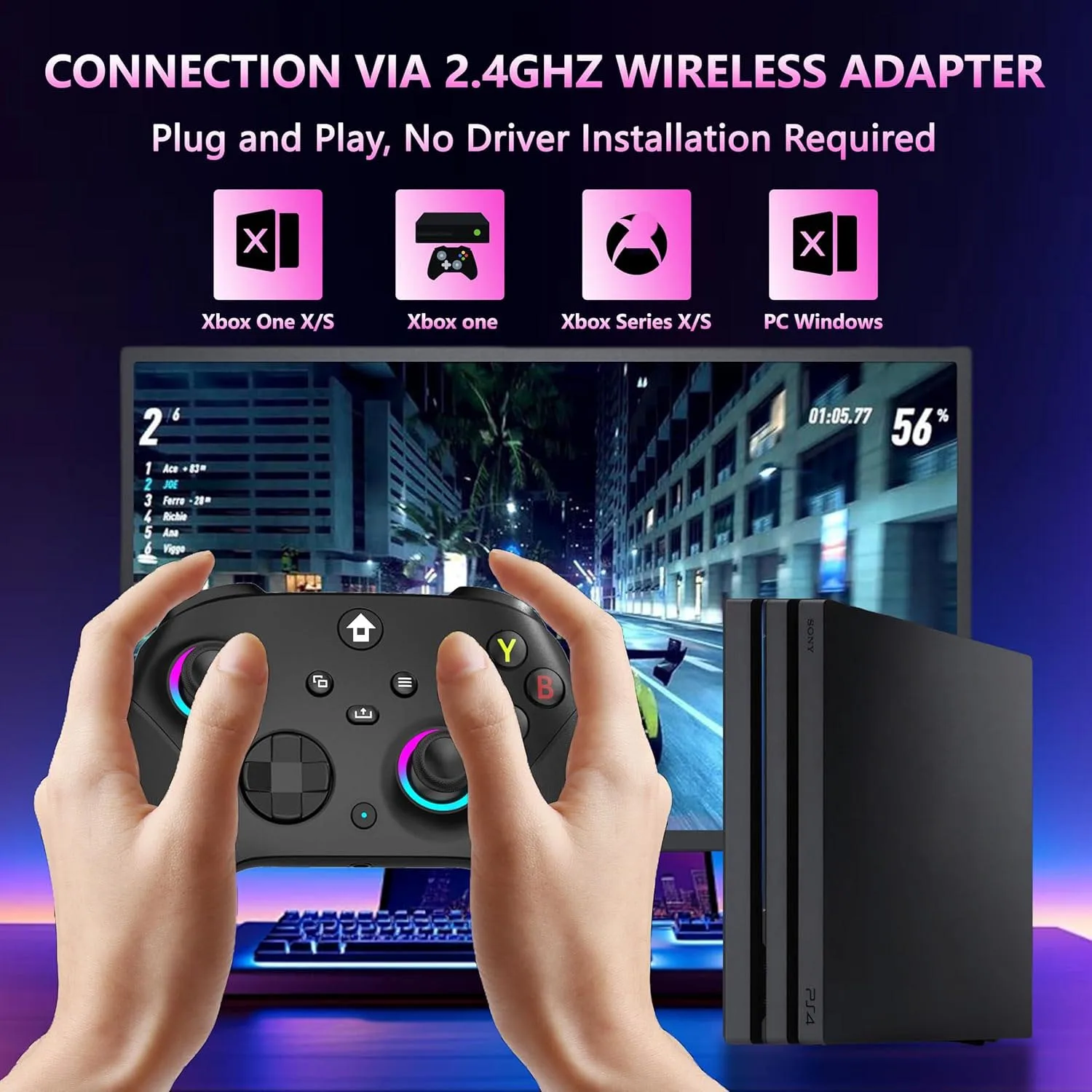 (Wide Compatibility Platform&4 RGB Lighting Modes) - Our wireless xbox one controller with 2.4GHZ wireless adapter for Xbox One/Xbox One S/Xbox One X/Xbox Series X/Xbox Series S Consoles,Steam PC Windows 10 and above.