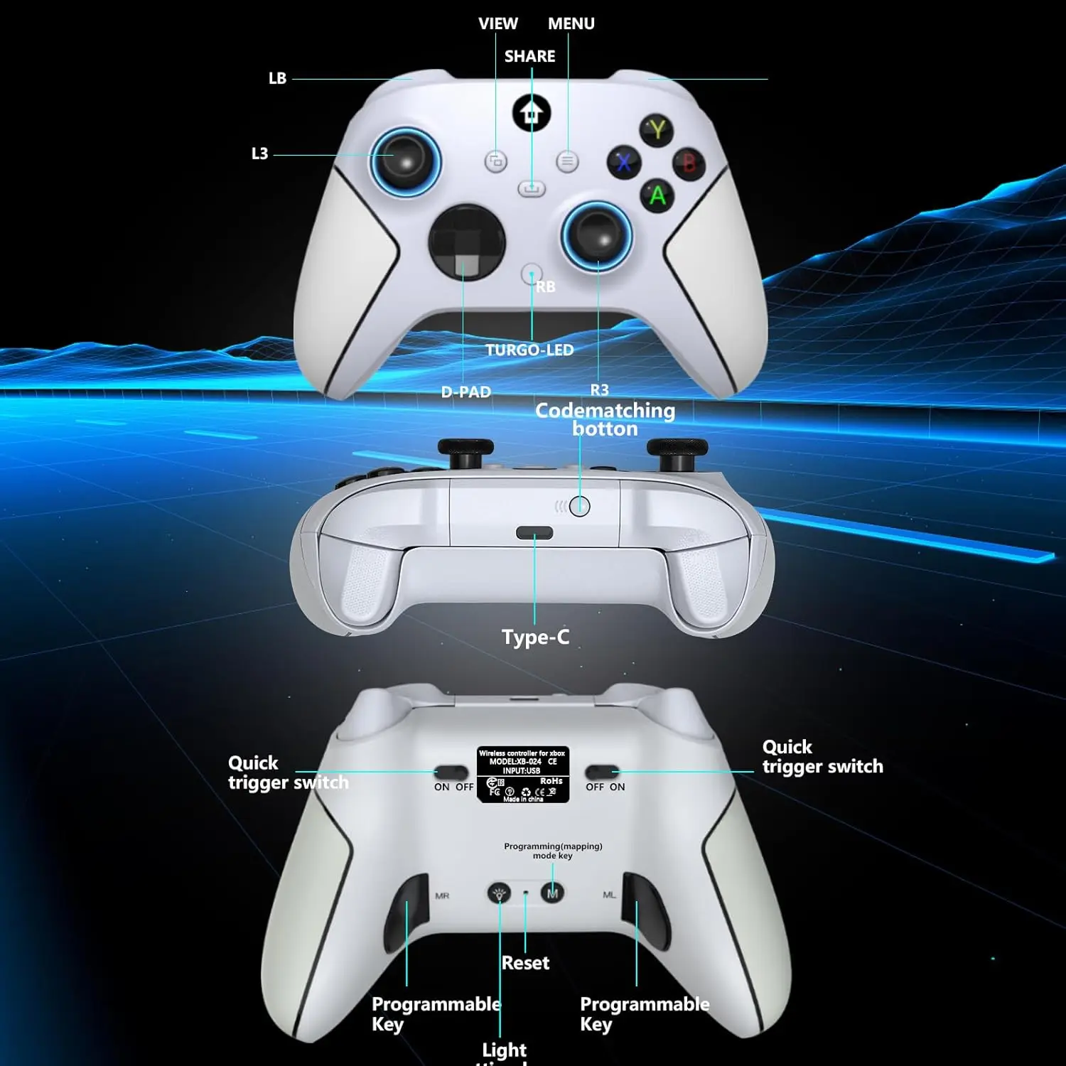 (Programmable Keys&AUTO TURBO) - Buttons "ML"/"MR" on the back of the wireless xbox one controller can map basic function keys of A/B/X/Y/LB/RB/L3/R3/D-PAD, achieving 1-16 combination function keys.